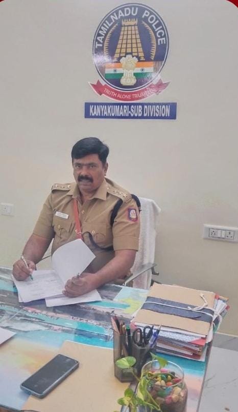 கன்னியாகுமரி காவல்துறை உட் கோட்ட புதிய டிஎஸ்பியாக எஸ். ஜெயச்சந்திரன் இன்று பொறுப்பேற்றுக்கொண்டார். சட்ட ஒழுங்கு,மக்கள் பாதுகாப்பை ஆகியவற்றை மேம்படுத்தும் நோக்குடன், அவர் அதிகாரப்பூர்வமாக தனது பணிகளை இன்று தொடங்கினார்.