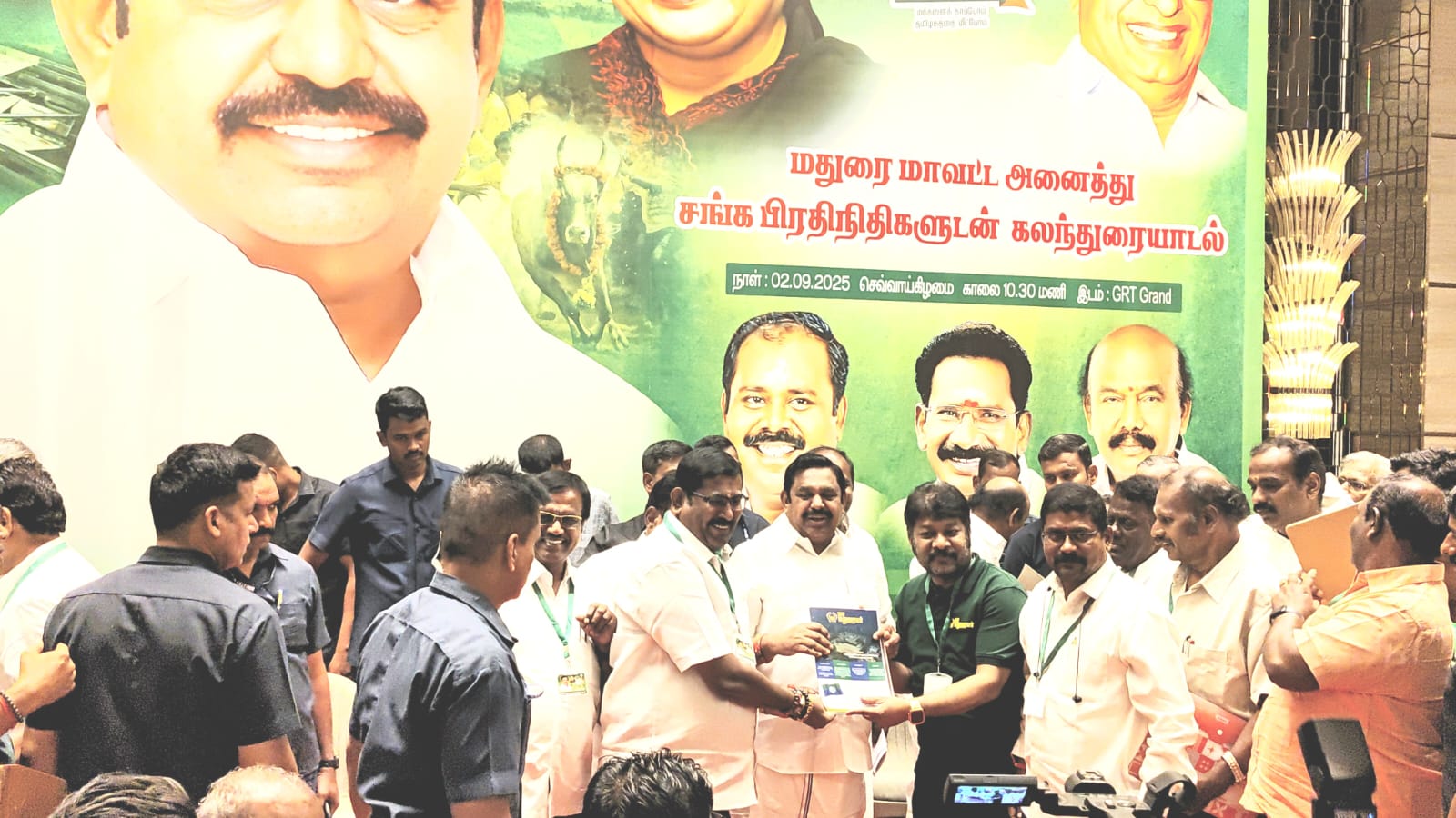மதுரை வந்த தமிழ்நாடு சட்டசபை எதிர்க்கட்சித் தலைவர் எடப்பாடி பழனிசாமியுடன் மதுரை மாவட்ட நகரக் கழகச் செயலாளர் முன்னாள் அமைச்சர் செல்லூர் கே. ராஜு, மதுரை புறநகர் மாவட்ட கழகச் செயலாளர் மற்றும் சட்டமன்ற உறுப்பினர் வி.வி. ராஜன் செல்லப்பா, தமிழ்நாடு எதிர்க்கட்சித் துணைத் தலைவர் மற்றும் மதுரை மேற்கு மாவட்ட கழகச் செயலாளர் ஆர்பி உதயகுமார் ஆகியோர் உட்பட முன்னாள் அமைச்சர்கள் காமராஜ் மற்றும் பா. வளர்மதி ஆகியோர் முன்னிலையில் மதுரை மாவட்ட தொழில் சங்க பிரதிநிதிகளுடன் மதுரை சிந்தாமணி அருகே தனியார் விடுதியில் கலந்துரையாடல் நிகழ்ச்சி நடைபெற்றது.