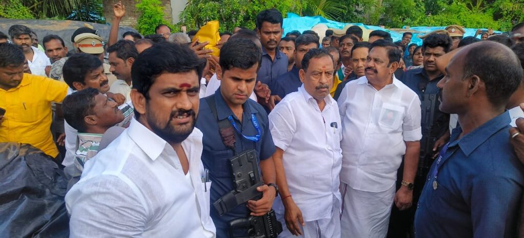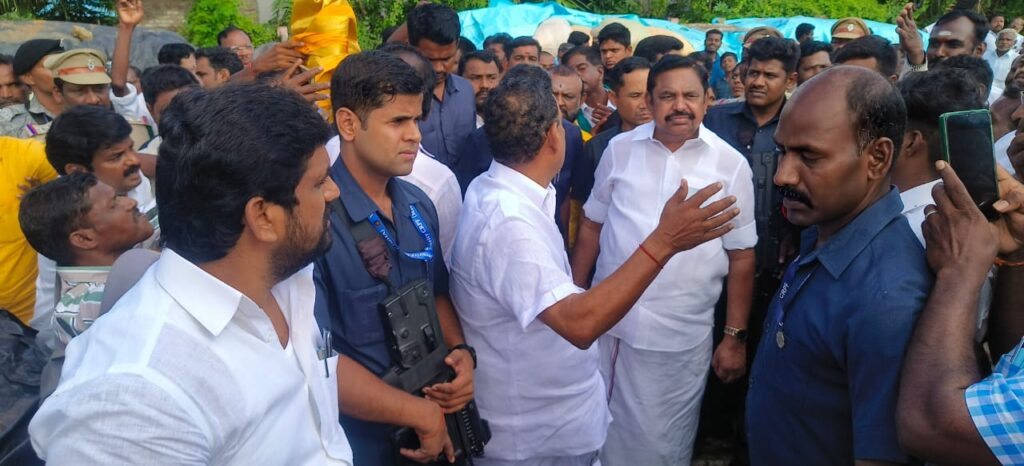 இந்நிலையில் டெல்டா மாவட்டங்களில் அதிமுக பொதுச் செயலாளர் எதிர்க்கட்சி தலைவருமான எடப்பாடி கே.பழனிசாமி சென்று நேரில் ஆய்வு மேற்கொண்டார். இந்நிலையில் நாகப்பட்டினம் மாவட்டம் கீழ்வேளூர் அருகே உள்ள வெண்மணி அரசு நேரடி நெல் கொள்முதல் நிலையத்தில் நேரில் ஆய்வு செய்து விவசாயிகளுடன் குறைகளை கேட்டறிந்தார். லாரிகள் மூலம் நெல் மூட்டைகள் இயக்குவது தாமதம் அடைந்ததால் நேரடி நெல் கொள்முதல் நிலையங்கள் மூட்டைகள் தேக்கமடைந்து மழையால் செய்தமடைந்துள்ளதாகவும் கனமழையால் அறுவடைக்கு தயாராக இருந்த நெல்மணிகள் வயலில் சாய்ந்து முளைக்க தொடங்கி உள்ளதாகவும், ஈரப்பதத்தை உயர்த்தி வழங்க வேண்டும் உள்ளிட்ட கோரிக்கைகளை விவசாயிகள் முன் வைத்தனர்.