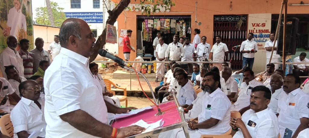 இந்த தேர்தல் இதுவரை கண்டிராத தேர்தல், ஜனநாயகத்திற்கும், சர்வாதிகாரத்திற்கும், மக்களாட்சிக்கும், மன்னராட்சிக்கும் இடையே நடைபெறும் தேர்தல்., இந்த மன்னராட்சிக்கு முடிவுரை எழுத வேண்டும். அவர்கள் தலைகீழாக நின்று மண்டியிட்டு பிச்சை கேட்டாலும் நீங்கள் வாக்களிக்க வேண்டிய சின்னம் இரட்டை இலை., எடப்பாடி பழனிச்சாமியை கோட்டைக்கு அனுப்புவோம், ஸ்டாலினை ஓய்வு எடுக்க வீட்டுக்கு அனுப்புவோம் என பேசினார்.