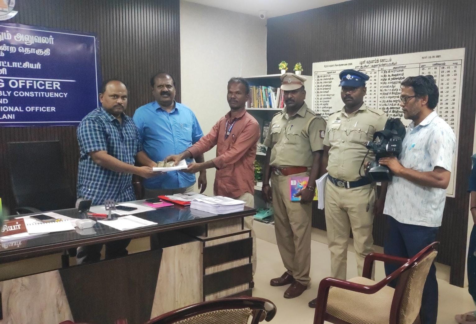 பறிமுதல் செய்யப்பட்ட தொகை பழனி தேர்தல் நடத்தும் அலுவலரிடம் ஒப்படைக்கப்பட்டது.