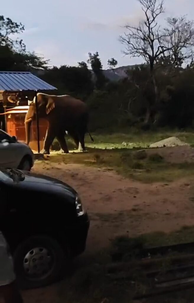 கோவை, தொண்டாமுத்தூர் அருகே உள்ள நரசிபுரம் அடுத்த மேற்கு தொடர்ச்சி மலை அடிவாரத்தில் அமைந்து உள்ள தானிக்கண்டி எனப்படும் மலைவாழ் கிராமம். இங்க வாழும் மலைவாழ் பழங்குடியின மக்கள் வணங்கக் கூடிய அம்மன் கோவில் அருகே உள்ளது. நேற்று இரவு உணவு தேடி கொண்டு அந்த கோயிலுக்குள் புகுந்த ஒற்றைக் காட்டு யானையானது வெளியே வர முடியாமல் சிக்கித் தவித்தது.