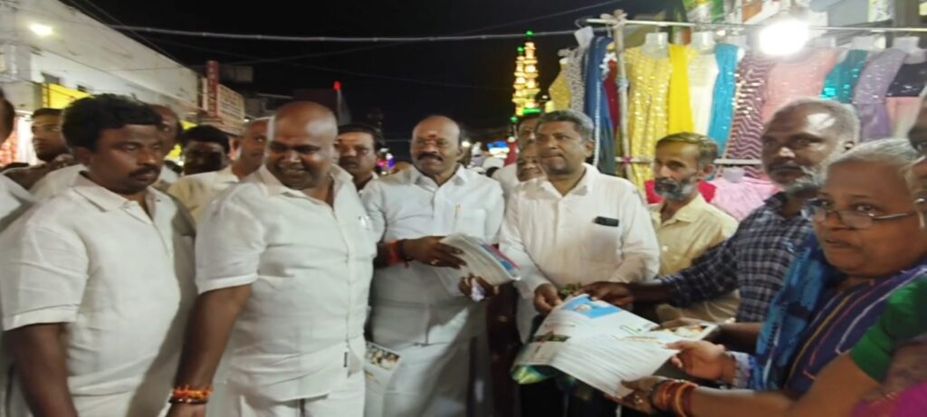 பொதுமக்களை சந்தித்து திண்ணை பிரச்சாரம் மற்றும் துண்டு பிரசுரங்களை சட்டமன்ற எதிர்க்கட்சித் துணைத் தலைவர் ஆர் பி உதயகுமார் வழங்கினார்.
