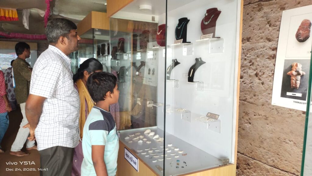 சென்னை மாகாணத்தில் இருந்து வருகை தந்தவர்கள் பொருட்களை பார்வையிட்டனர். மேலும் கிடைத்த பொருட்கள் பற்றியும் அதனை பயன்படுத்திய வருடம் குறித்தும் அகழாய்வு இயக்குனர் பொன் பாஸ்கர் விளக்கம் அளித்தார்.