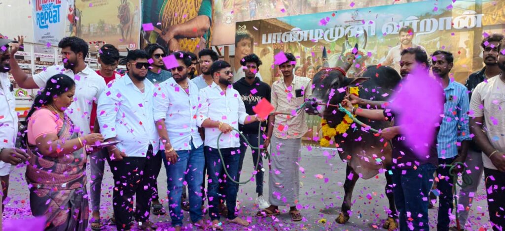 இதனிடையே படம் வெளியாகி உள்ள தி்ரையரங்க வளாகத்திற்கு ஜல்லிக்கட்டு காளையை அழைத்து வந்த ரசிகர்கள் அந்தக் காளைக்கு மாலை அணிவித்து, ஆரத்தி எடுத்தும் வழிபாடு செய்து ரசிகர்கள் மரியாதை செய்தனர்.