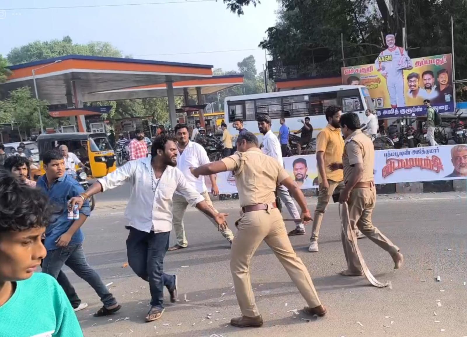 மதுரையில் நடிகர் அஜித்தின் விடாமுயற்சி திரைப்படம் 27 திரையரங்கில் வெளியான நிலையில் ரசிகர்கள் கொண்டாட்டத்தில் ஈடுப்பட்டனர். அரசடி சோலைமலை தியேட்டர் முன்பு சாலையில் அலப்பறை செய்த ரசிகர்கள் பட்டாசு வெடிக்க முயன்ற நிலையில் லத்தி அடி கொடுத்து விரட்டியடித்ததால் பரபரப்பு ஏற்பட்டது.