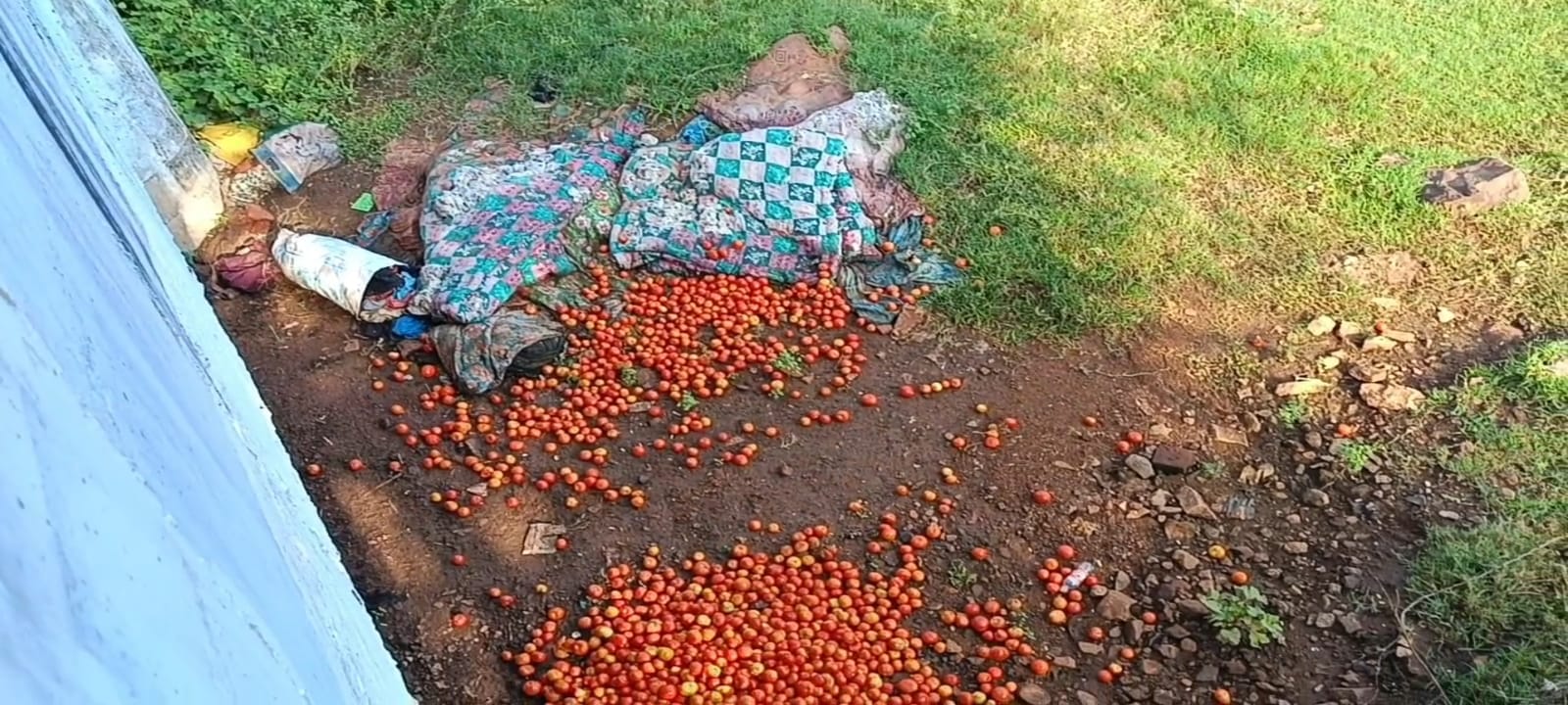 கஷ்டப்பட்டு விளைவிக்கப்பட்ட தக்காளிகள் விற்பனையாகாமல் சாலையில் கொட்டப்படும் காட்சி வேதனையை அளிப்பதாக விவசாயிகள் தெரிவிக்கின்றனர்.