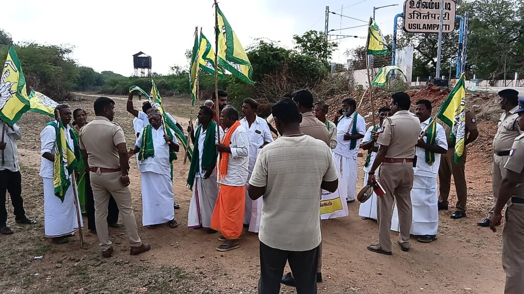 மத்திய மற்றும் பஞ்சாப் அரசுக்கு எதிராக கண்டன கோசங்களை எழுப்பி இரயில் மறியலில் ஈடுபட முயன்ற விவசாய சங்கத்தினரை கைது செய்யப்பட்ட சம்பவம் உசிலம்பட்டியில் பரபரப்பை ஏற்படுத்தியுள்ளது.