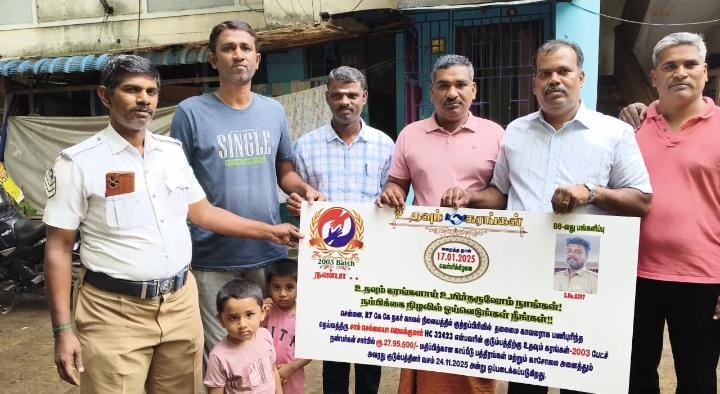 சென்னை ஆலந்தூர் காவலராக பணியாற்றிய சாம் செல்லையா ஜெயகுமார் கடந்த ஜனவரி மாதம் உடல் நலக்குறைவால் உயிரிழந்ததைத் தொடர்ந்து, அவரது குடும்பம் கடும் பொருளாதார நெருக்கடியில் தள்ளாடி வந்தது.