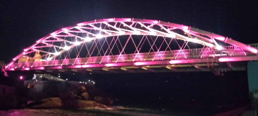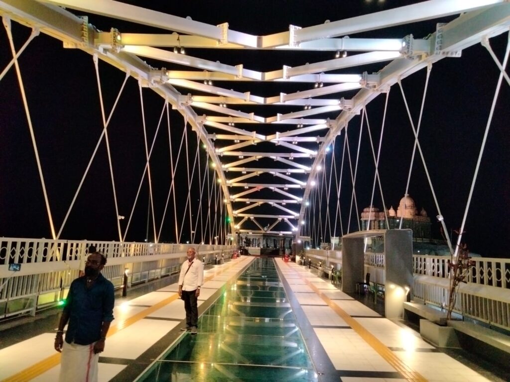 கன்னியாகுமரி கடலில் திருவள்ளுவர் சிலை_ சுவாமி விவே கானந்தர் நினைவு மண்டபம் இடையே உள்ள கடல் பரப்பில். தமிழக முதல்வர் மு.க.ஸ்டாலின் ஆணைக்கு இணங்க ரூ.38.கோடி நிதி ஒதுக்கீட்டில் கண்ணாடி இழை பாலம் கட்டி முடிக்கப்பட்டது.