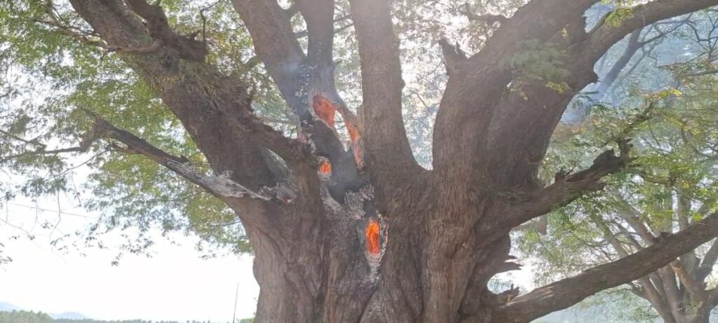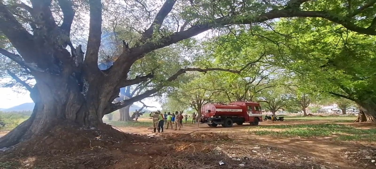 நத்தம் அருகே புளியமரத்தில் பற்றி எறிந்த தீ..,