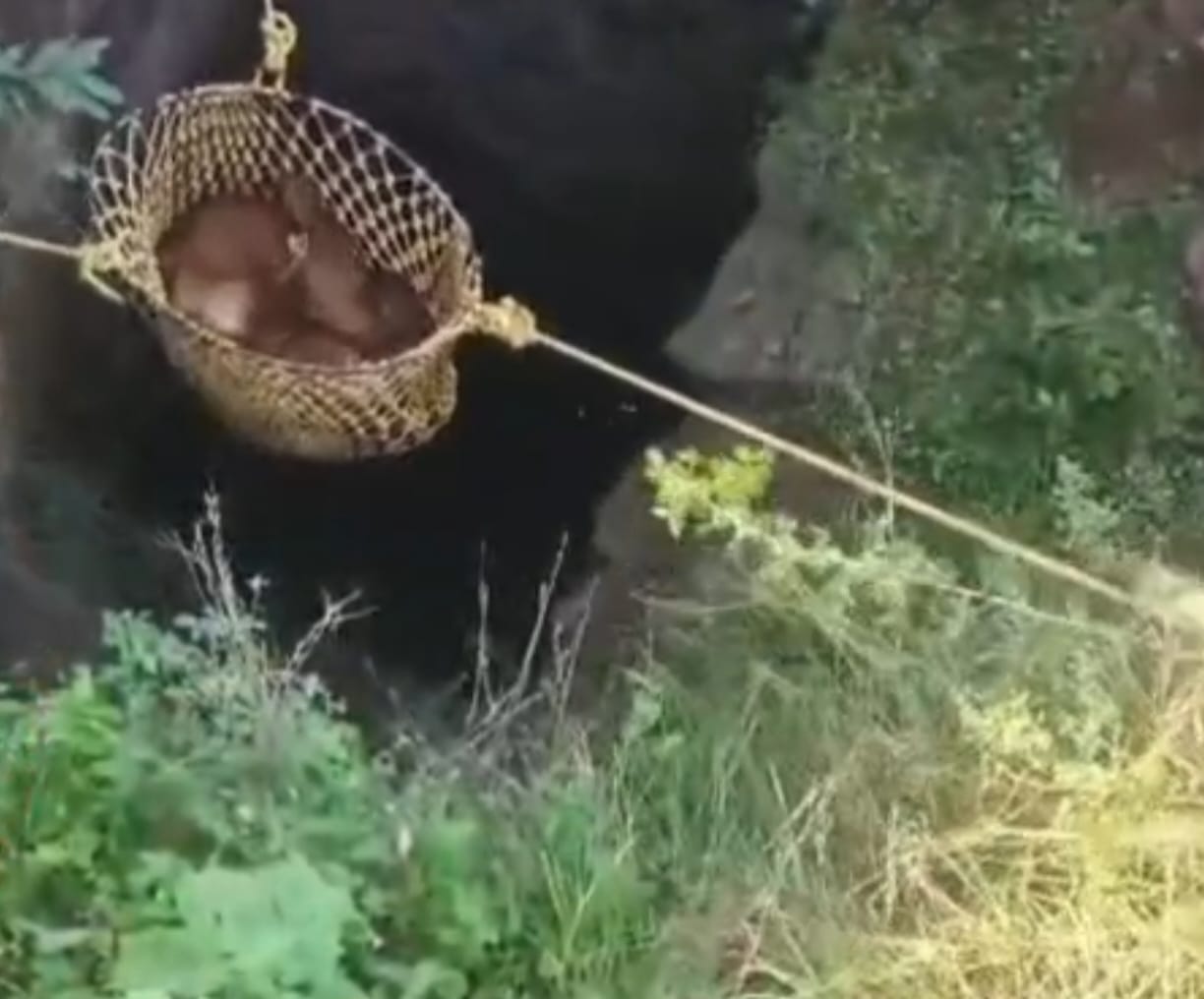 கிணற்றில் விழுந்த பசுமாட்டை உயிருடன் மீட்ட தீயணைப்புத் துறையினர்..,