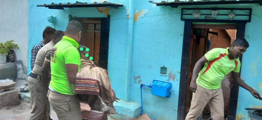 நிலைய அலுவலர் சிவக்குமார் அவர்களின் துரித நடவடிக்கையால் எவ்வித காயம் இன்றி மீட்டது தீயணைப்பு மற்றும் பேரிடர் மீட்பு குழுவினருக்கு அக்குடும்பத்தினர் கண்ணீர் மல்க நன்றியினை கூறினர்.