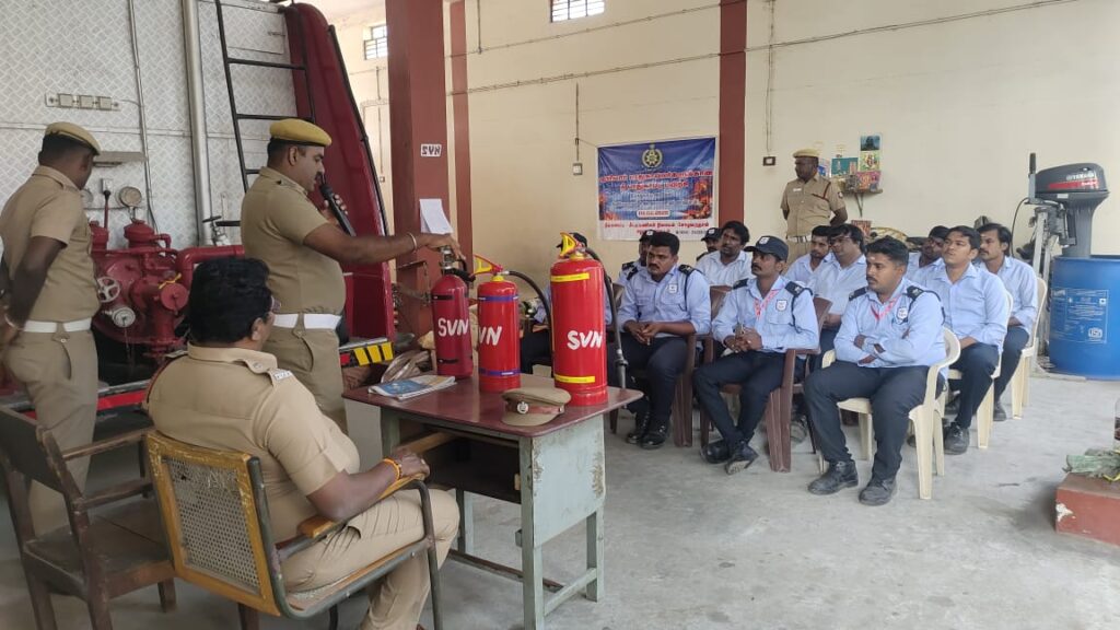 நிலைய அலுவலர் முத்துக்குமரன் மற்றும் நாகராஜ் தலைமையில் குழுவினர் பயிற்சி அளித்தனர். இதில் தனியார் நிறுவனங்கள் மற்றும் பள்ளி கல்லூரிகளில் செக்யூரிட்டி கார்ட்ஸ்ஆக பணிபுரியும் 50க்கும் மேற்பட்டோர் கலந்து கொண்டு பயிற்சி பெற்று சான்றிதழ் கள்பெற்று சென்றனர்.