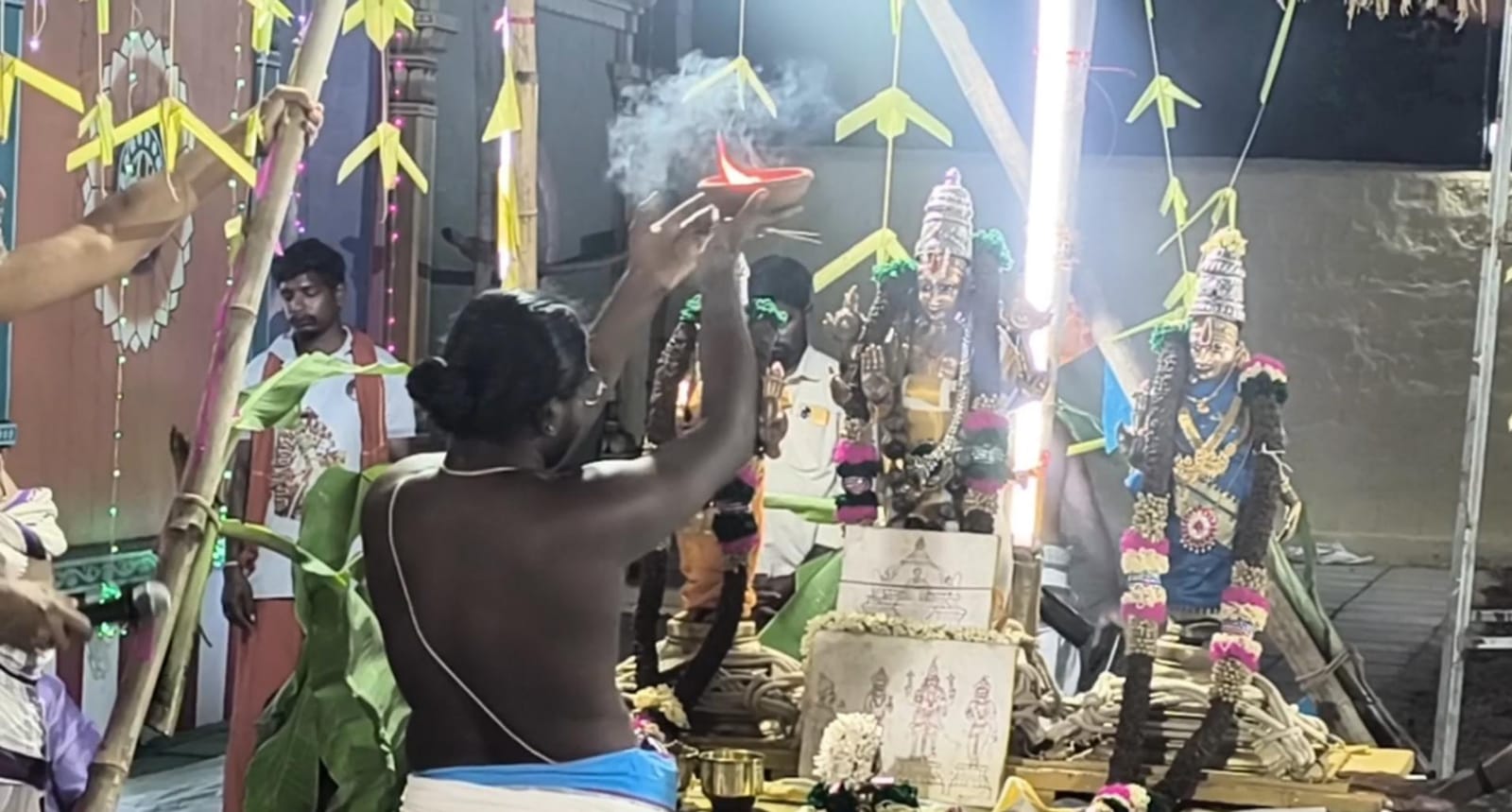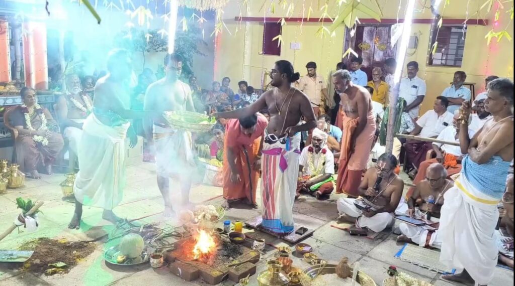 இந்நிலையில் கும்பாபிஷேகம் கலசத்தில் ஒன்பது வகையான தானியங்களை நிரப்பப்பட்டு அதனைத் தொடர்ந்து.