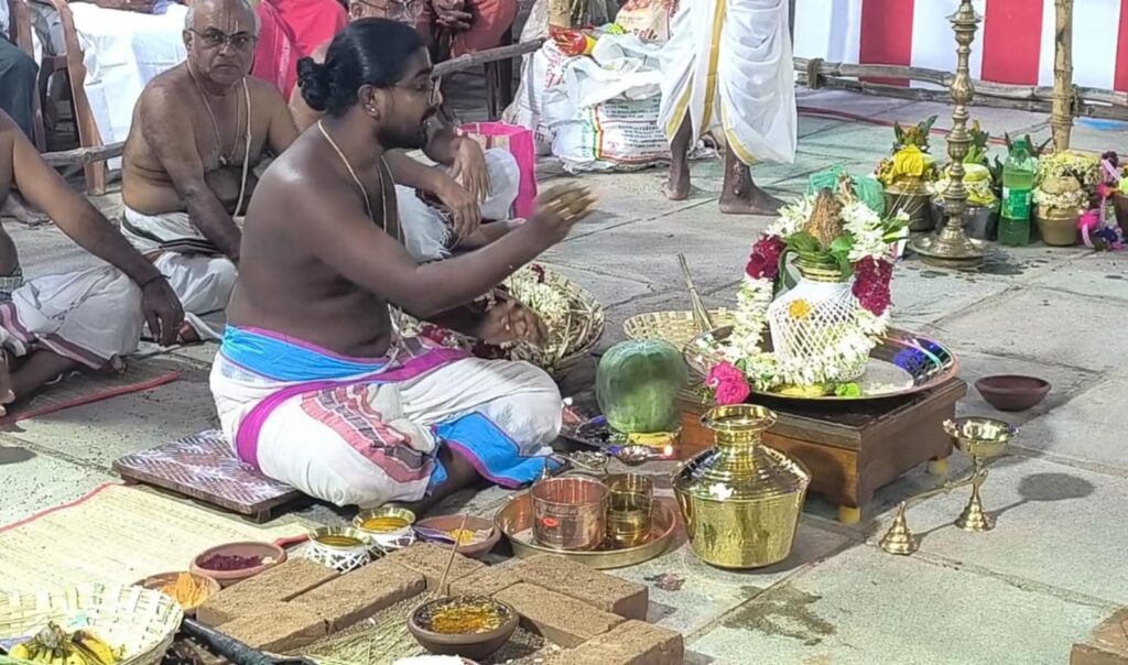 அதனைத் தொடர்ந்து கோவில் வளாகத்தில் யாகசாலைகள் அமைக்கப்பட்டு முதல் கால யாக ஹோமங்கள். விஷ்வக்சேன ஆராதனம், ம்ருஞ்சங்கிரஹணம், அங்குரார்ப்பணம், புண்யாகவசனம், பேரி பூஜை, அக்னி ப்ரதிஷ்டை, கலா ஹர்ஷணம் , பாலிகைபூஜை, பூர்ணாஹுதி யாக பூஜைகள் நடைபெற்றது