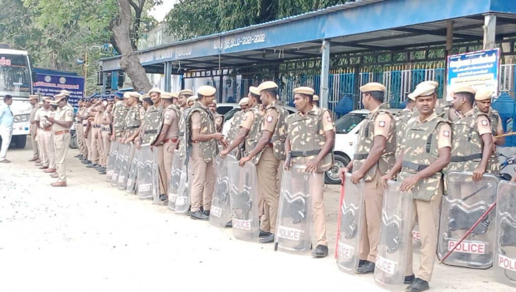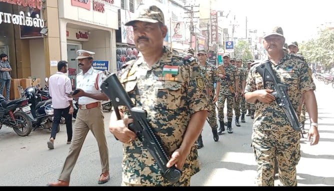 தமிழ்நாட்டில் ஏப்ரல் 23ஆம் தேதி சட்டமன்ற தேர்தல் நடைபெறும் என தேர்தல் ஆணையம் அறிவித்திருக்கும் நிலையில் தேர்தலை அமைதியாகவும் பயமில்லாமலும் அனைவரும் வாக்களிக்க வேண்டும் என்பது குறித்து விழிப்புணர்வை ஏற்படுத்தும் விதத்தில் இன்று அண்ணா சிலையின் துணை ராணுவம் காவல்துறையை இணைந்து கொடி அணிவிப்பு மரியாதை பேரணி நடைபெற்றது. துப்பாக்கி ஏந்திய துணை ராணுவ வீரர்கள் முக்கிய வீதிகளில் ஊர்வலமாக சென்று அச்சமில்லாமல் அனைவரும் வாக்களிக்க வேண்டும் என்பது குறித்து விழிப்புணர்வை ஏற்படுத்தினார்*