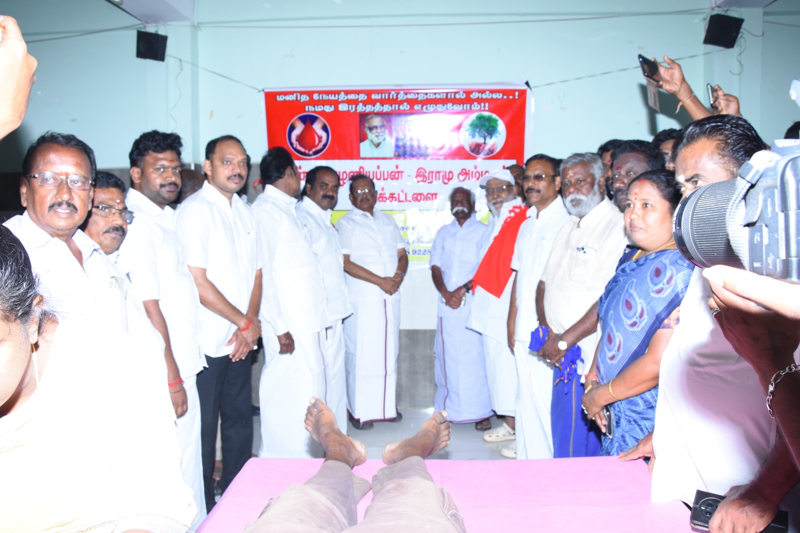 இரத்தவங்கி மருத்துவர் சரவணன் தலைமையில் மருத்துவக் குழுவினருடன் இரத்ததான முகாம் நடைபெற்றது. அறக்கட்டளையின் துவக்க நிகழ்வை இயற்கை வளங்கள் துறை அமைச்சர் மாண்புமிகு எஸ் .ரகுபதி அவர்கள் ரிப்பன் வெட்டி துவக்கி வைத்தார். இரத்ததான முகாமை பிற்படுத்தப்பட்டோர் நலத்துறை அமைச்சர் மாண்புமிகு மெய்யநாதன் துவக்கி வைத்தார். மாவட்ட செயலாளர் திரு. செல்லபாண்டியன், சட்டமன்ற உறுப்பினர் முத்துராஜா, மாநகர மேயர் திலகவதி செந்தில் ஆகியோர் இரத்தக் கொடையாளர்களுக்கு சான்றிதழ் வழங்கி சிறப்பித்தார்கள். நிகழ்வுக்கான பணிகளை குருதிக்கூடு அமைப்பைச் சேர்ந்த முத்துராமலிங்கம், பாரதி டியூசன் சுப்பிரமணியன், யோகா செல்வராஜ், ஆகியோர் செய்திருந்தார்கள். அறக்கட்டளை நிர்வாகி பழ .சண்முகம் (எ)ராஜா நன்றி கூறினார்.