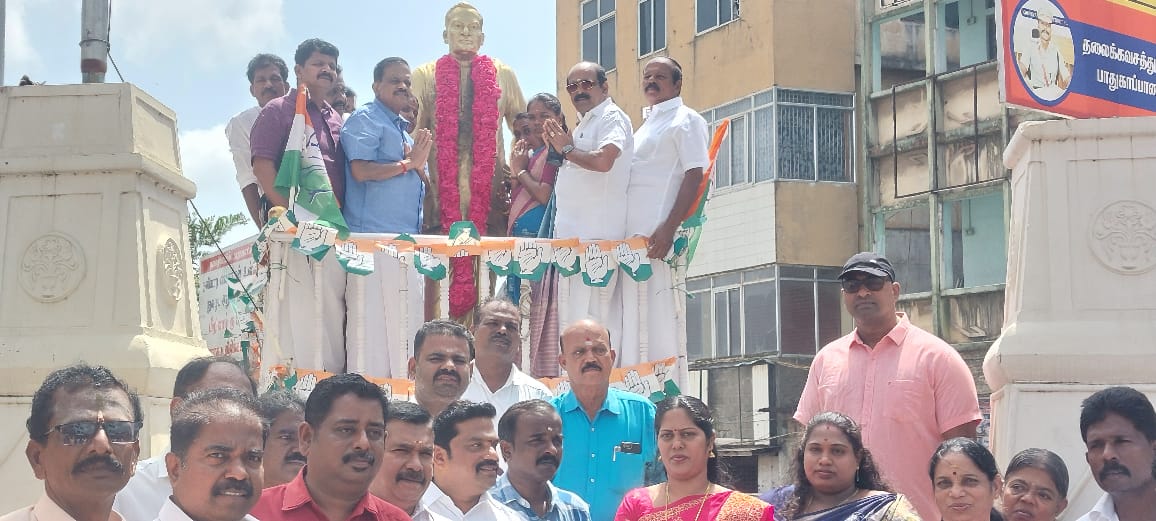 குமரி தந்தை மார்ஷல் நேசமணி அவர்களின் 57-வது ஆண்டு நினைவு தினத்தை முன்னிட்டு நாகர்கோவிலில் உள்ள அவரது திருஉருவ சிலைக்கு குமரி கிழக்கு மாவட்ட கழகச் செயலாளரும், முன்னாள் அமைச்சரும், கன்னியாகுமரி சட்டமன்ற உறுப்பினருமான தளவாய்சுந்தரம் தலைமையில் கழக நிர்வாகிகள் மாலை அணிவித்து மரியாதை செலுத்தினார்கள்.