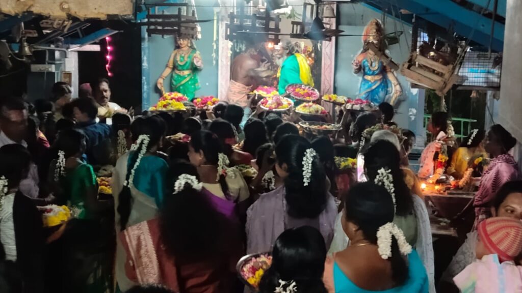 இந்த ஊர்வலத்தில் நூற்றுக்கணக்கான பெண்களும் ஆண்களுமாக தலையில் பூத்தட்டுகளை சுமந்து வந்து அம்மனுக்கு காணிக்கையாக செலுத்தி வழிபட்டனர். விழாவுக்கான ஏற்பாடுகளையும் நிகழ்ச்சிகளையும் வேலு பூசாரி தலைமையிலான கார்த்திக் பூசாரி அருணாசலம் பூசாரி உள்ளிட்டோர் செய்திருந்தனர். இரவில் அன்னதானமும் நாடக நிகழ்ச்சிகளும் வான வேடிக்கையும் நடைபெற்றன.