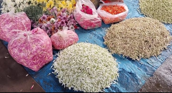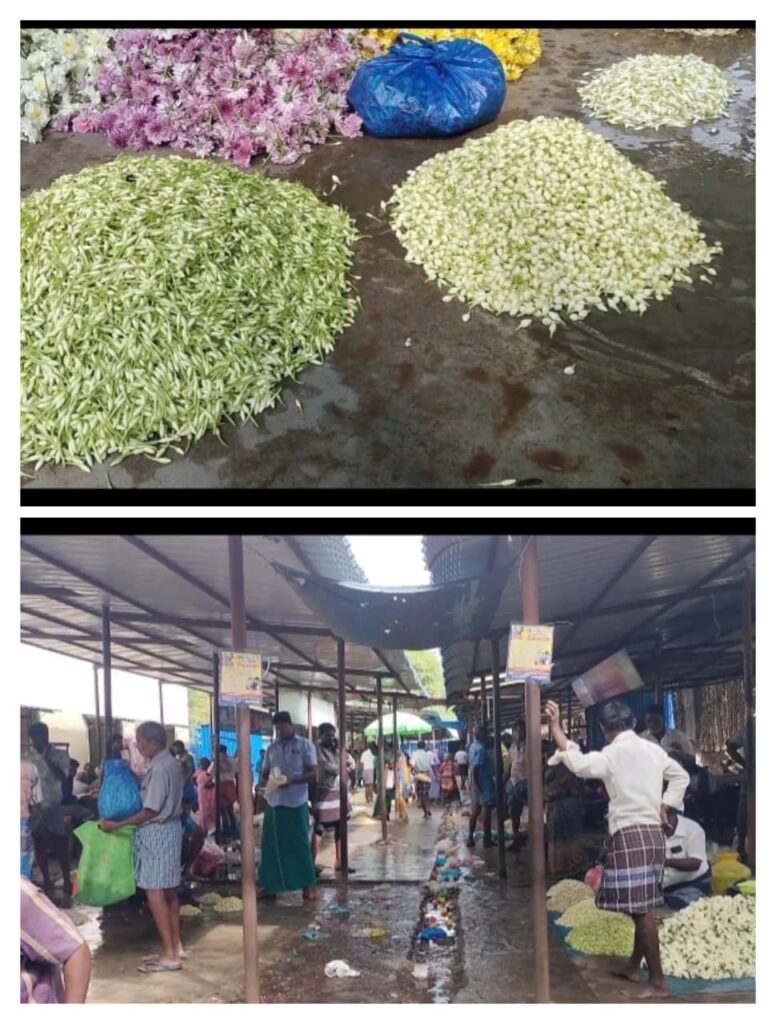 மதுரை மாவட்டம் உசிலம்பட்டி மற்றும் அதன் சுற்றுவட்டார பகுதிகளில் பரவலான மழை மற்றும் அதிகாலை நேரங்களில் விழும் பனிப்பொழிவு காரணமாக பூக்களின் வரத்து குறைந்து காணப்படுகிறது.,