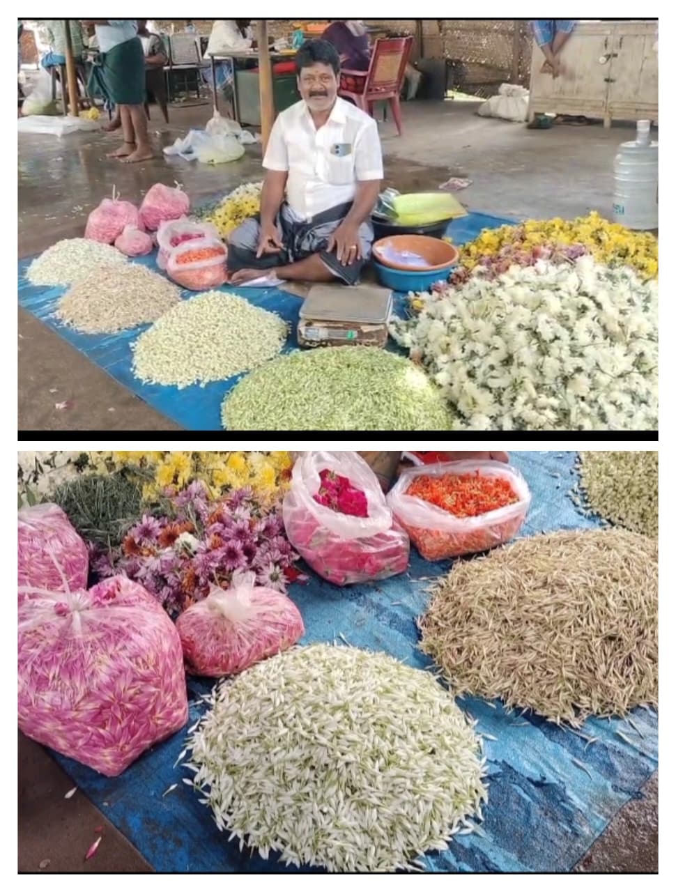 அதன்படி நேற்று வரை 1700 க்கு விற்பனை ஆகிய மல்லிகை பூ இன்று 4500 க்கு விற்பனை செய்யப்படுகிறது, இதே போல் கனகாம்பரம் மற்றும் காக்கரட்டான் 2000 ரூபாய்க்கும், முல்லை 1300, பிச்சி 1200 ரூபாய்க்கும் விற்பனை ஆகிறது., மேலும் சம்மங்கி, பன்னீர் ரோஸ், பட்டன் ரோஸ் 300 ரூபாய்க்கும், அரளி 250, செவ்வந்தி மற்றும் மரிக்கொழுந்து 200 ரூபாய்க்கும் விற்பனை ஆகி வருகிறது.,