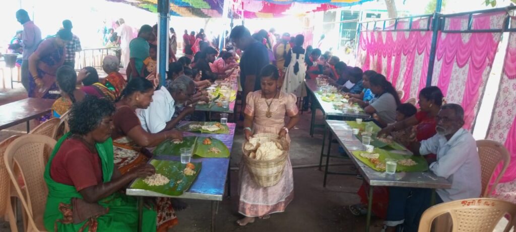 இந்த பகுதியை சேர்ந்த முத்துப்பாண்டி கடந்த 10 ஆண்டுகளுக்கு மேலாக பௌர்ணமி,மற்றும் அமாவாசை அன்று பொதுமக்களுக்கு அன்னதானம் வழங்கி வருகிறார். தை திங்கள் மற்றும் தை அமாவாசை முன்னிட்டு இன்று காலை முதல் மாலை வரை அன்னதானம் நடை பெற்று வருகிறது.