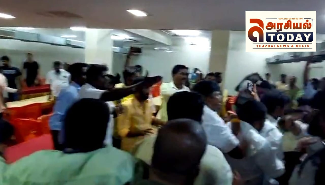 பின்பு அனைவரிடமும் எடப்பாடி பழனிச்சாமி மனுக்களை வாங்கினார். பின்பு வந்திருக்கும் அனைத்து சங்க நிர்வாகிகளும் சாப்பிட்டு செல்லுமாறு அழைப்பு கொடுத்தார். இதையடுத்து சாப்பிடச் சென்ற சங்க நிர்வாகி உடன் கட்சி நிர்வாகிகளும் சென்றனர். கட்சி நிர்வாகிகளுக்கு சாப்பாடு மறுக்கப்பட்டதால் பரபரப்பு ஏற்பட்டது. ஒருவருக்கொருவர் மோதும் சூழ்நிலை ஏற்பட்டது.