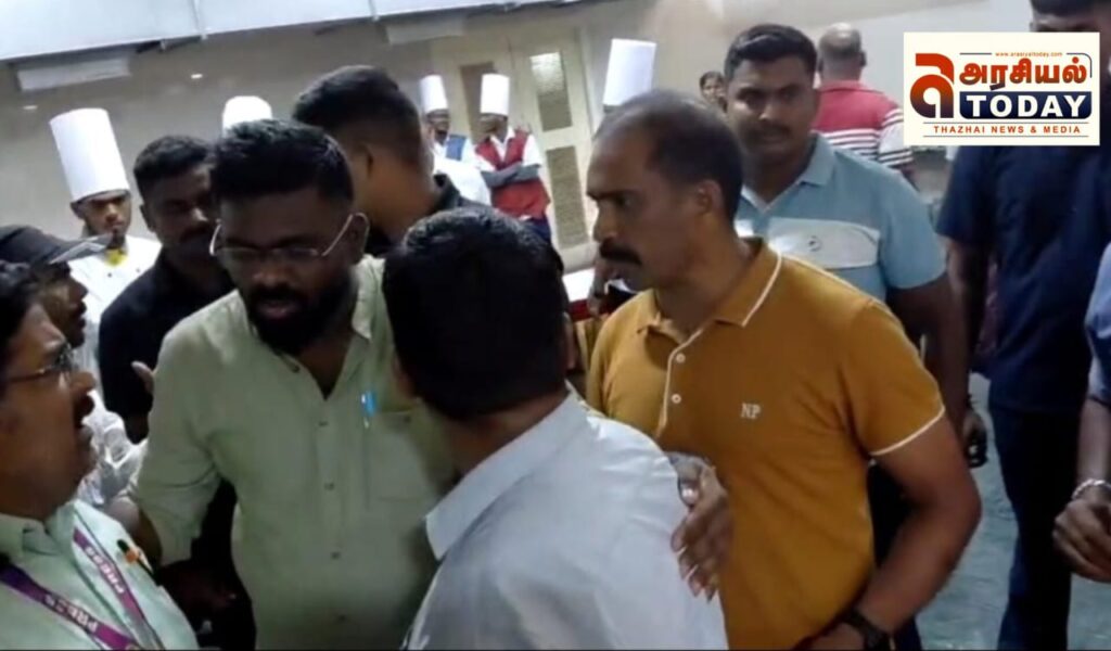 திண்டுக்கல்லில் எடப்பாடி பழனிச்சாமி தலைமையில் நடந்த கூட்டத்தில் கட்சி நிர்வாகிகள் சாப்பிட சென்ற போது, அனுமதி மறுக்கப்பட்டதால் பிரச்சனை ஏற்பட்டது. இதை படம் எடுத்த பத்திரிக்கையாளர் கேமரா பறிக்கப்பட்டதால், பத்திரிகையாளர்கள் மறியலில் ஈடுபட்டனர்.