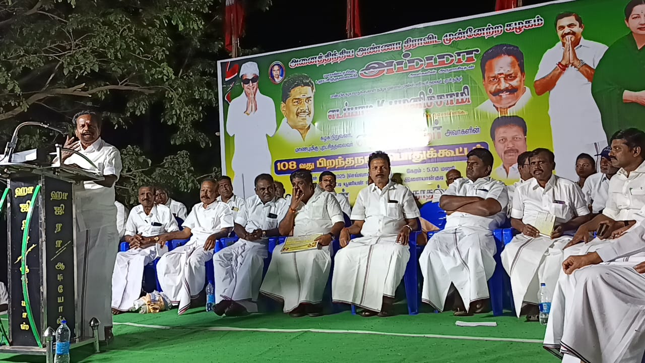 அதனடிப்படையில் காவிரி, குண்டாறு நதிநீர் இணைப்பு திட்டத்தை செயல்படுத்தப்பட்டது. பொதுமக்கள் அமைச்சர்கள் மற்றும் சட்டமன்ற உறுப்பினர்களை எளிதில் சந்தித்து தங்களது பிரச்சினைகளை தெரிவித்து தீர்வு கண்டனர். தற்போதைய ஆட்சியில் சட்டமன்ற உறுப்பினர், நாடாளுமன்ற உறுப்பினர்களை பொதுமக்கள் பார்க்க முடியாத அவலநிலையில் இருக்கின்றனர் என்று பேசினார். இந்நிகழ்ச்சியில் மாவட்ட கழக செயலாளர் செந்தில்நாதன் எம். எல். ஏ முன்னாள் சட்டமன்ற உறுப்பினர்கள் நாகராஜன், குணசேகரன், மாவட்ட அம்மா பேரவைச் செயலாளர் இளங்கோவன், கருணாகரன், நகர செயலாளர் நாகூர் மீரா, மாவட்ட கவுன்சிலர் மகேஸ்வரி செல்வராஜ், ஒன்றிய செயலாளர்கள் கே.எம்.கோபி, சேர்மன் முணியான்டி, ஒன்றிய கவுன்சிலர் சீமைச்சாமி மற்றும் மாவட்ட ஒன்றிய நகர, கிளை கழக நிர்வாகிகள் உள்ளிட்ட ஏராளமான கழக நிர்வாகிகள் கலந்து கொண்டனர்.