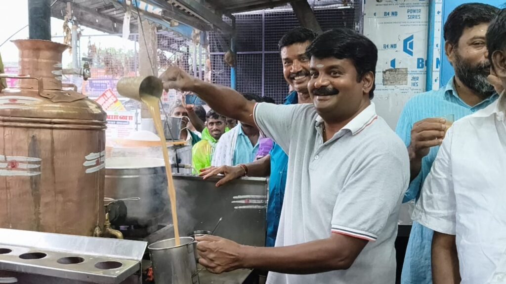 டீ மாஸ்டருக்கு டீ போட்டுக் கொடுத்த முன்னாள் அமைச்சர் டாக்டர்.சி.விஜயபாஸ்கர்