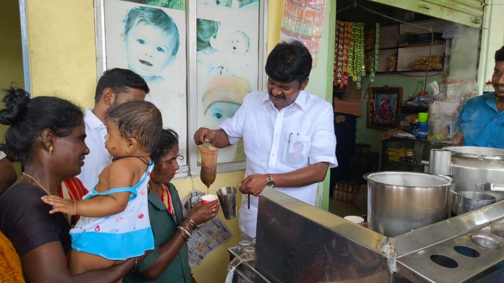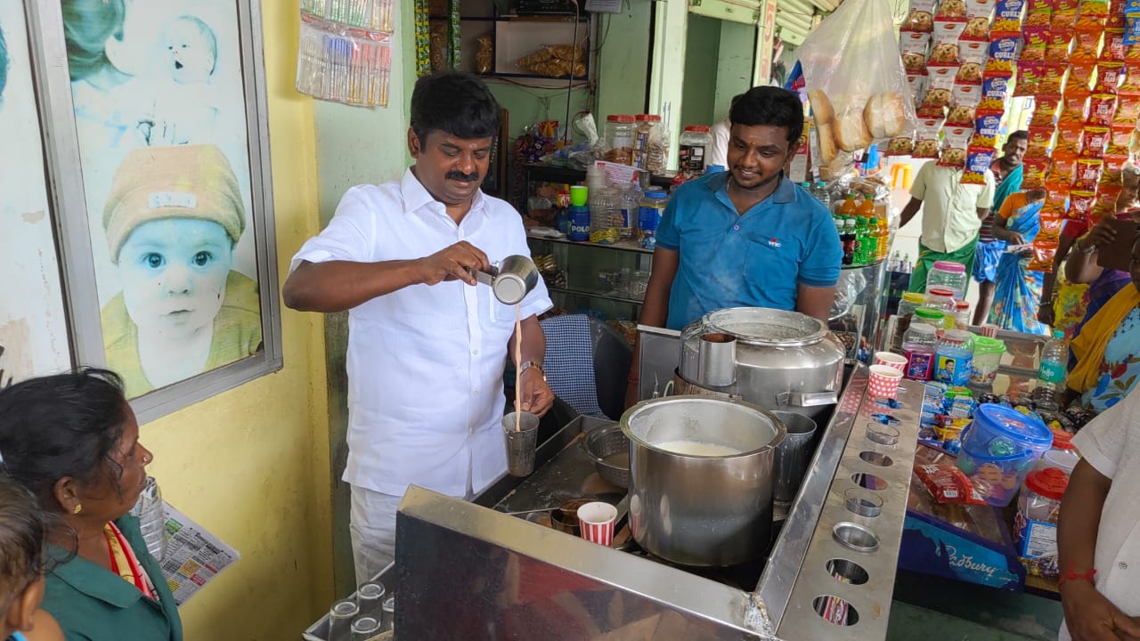 “அண்ணா சக்கரை கம்மியா ஒரு டீ போடுண்ணா” என்று அன்புடன் கேட்ட பெண்மணிக்கு, முன்னாள் அமைச்சர் சி.விஜயபாஸ்கர் உடனே டீ போட்டு கொடுத்தார். புதுக்கோட்டை மாவட்டம் இலுப்பூர் பேருந்து நிலையத்தில் நடந்த இச்சம்பவம் சுவாரஸ்யமாக இருந்தது.