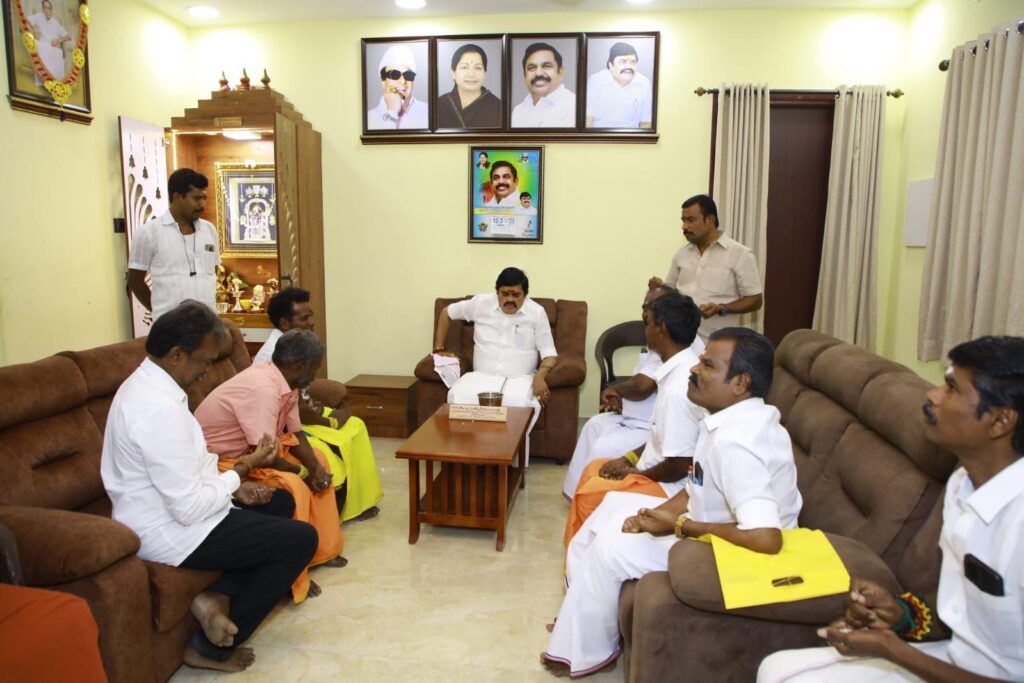 கோவிலுக்கு நிதி உதவி வழங்கிய முன்னாள் அமைச்சர் கே டி ராஜேந்திர பாலாஜி. விருதுநகர் மாவட்டம் சிவகாசி சட்டமன்ற தொகுதிக்குட்பட்ட பள்ளப்பட்டி ஊராட்சியில் உள்ள எம்ஜிஆர் நகரில் முத்து மாரியம்மன் கோவில் உள்ளது. இங்கு கும்பாபிஷேகம் நடத்துவதற்காக திருப்பணி வேலைகள் நடைபெற்று வருகின்றன. அதற்காக திருப்பணி குழுக்கமிட்டியினர் முன்னாள் அமைச்சரும் அதிமுக மேற்கு மாவட்ட கழகச் செயலாளருமான கே டி ராஜேந்திர பாலாஜியிடம் கோவில் திருப்பணிக்கு நன்கொடை வழங்க வேண்டும் என கோரிக்கை விடுத்தனர்.