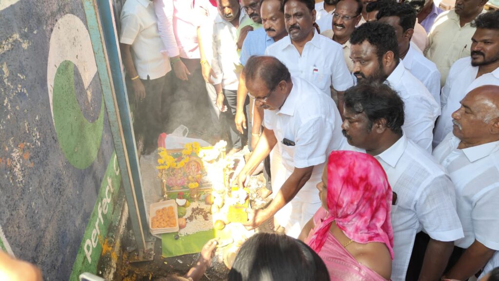 செங்கல்பட்டு மாவட்டம் புனித தோமையார் மலை ஒன்றியத்துக்கு உட்பட்ட முடிச்சூர் ஊராட்சி 11,6வது வார்டு பகுதியில் பொதுமக்கள் கோரிக்கை ஏற்று ஒருங்கிணைந்த ஒப்படைக்கப்பட்ட வருவாய் திட்டக்கூறு நிதியில் கீழ் 5கோடியே 35 இலட்சம் மதிப்பீட்டில் மழைநீர் வடிகால் வாய் திட்டத்துடன் இணைந்த சிமெண்ட் சாலை அமைப்பதற்காக அடிக்கல் நாட்டு விழா நடைபெற்றது.