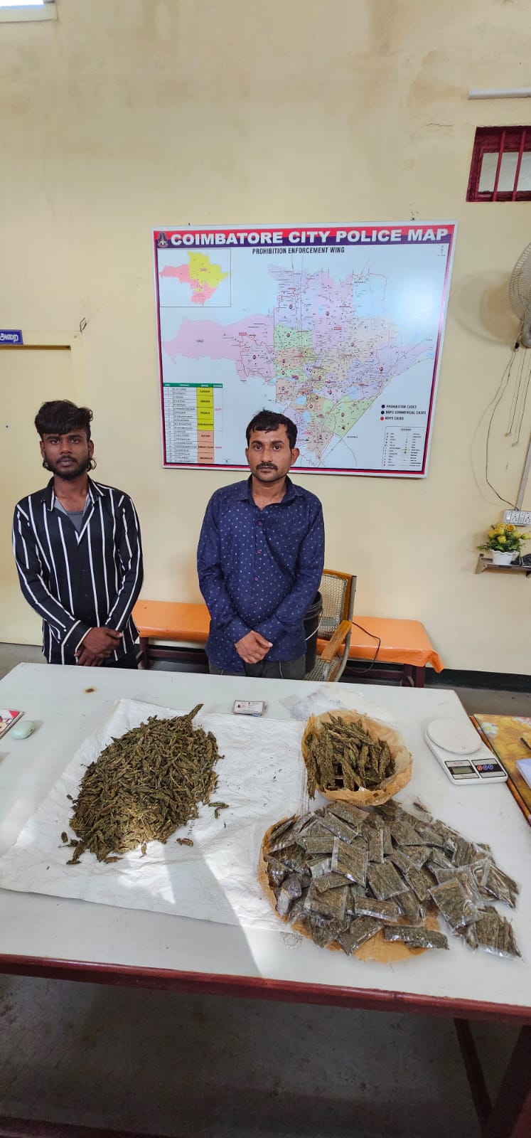 இந்நிலையில் கோவை மாநகர மதுவிலக்கு அமலாக்க பிரிவு போலீசார் ரோந்து சென்றனர். அவர்கள் காளப்பட்டி சாலையில் சென்ற போது அங்கு சந்தேகத்திற்கு இடமாக நின்று இருந்த இரண்டு பேரை பிடித்து விசாரணை நடத்தினர். அதில் அவர்கள் ஒடிசாவை சேர்ந்த பிஜய் குமார் மொகந்தி, தனுஷ் ஷா என்பதும், ஒடிசாவில் இருந்து கஞ்சாவை கோவைக்கு ரயில் மூலம் கடத்தி வந்து கல்லூரி மாணவர்கள் மற்றும் இளைஞர்களை குறி வைத்து விற்பனை செய்து வந்ததும் தெரிய வந்தது. இதை அடுத்து போலீசார் அந்த இரண்டு பேரையும் கைது செய்தனர்.