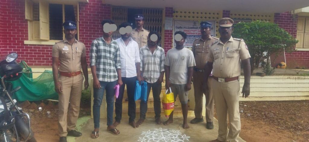 காரைக்குடி உட்கோட்ட போலீசார் ரகசிய தகவலின் அடிப்படையில் பள்ளத்தூர் கோட்டையூர் பகுதியில் உள்ள ஒரு வீட்டில் திடீர் சோதனை நடத்தினர். இதில், கொலைக்காக ஆயுதங்களை வைத்திருந்த நான்கு பேரை கைது செய்தனர். விசாரணையில், இவர்கள் காரைக்குடி பகுதியில் மார்ச் 18 அன்று நடைபெறவுள்ள முத்துமாரியம்மன் கோவில் திருவிழாவில் பழிவாங்கும் நோக்கில் ஒரு கொலை செய்ய திட்டமிட்டிருந்தது தெரியவந்துள்ளது.