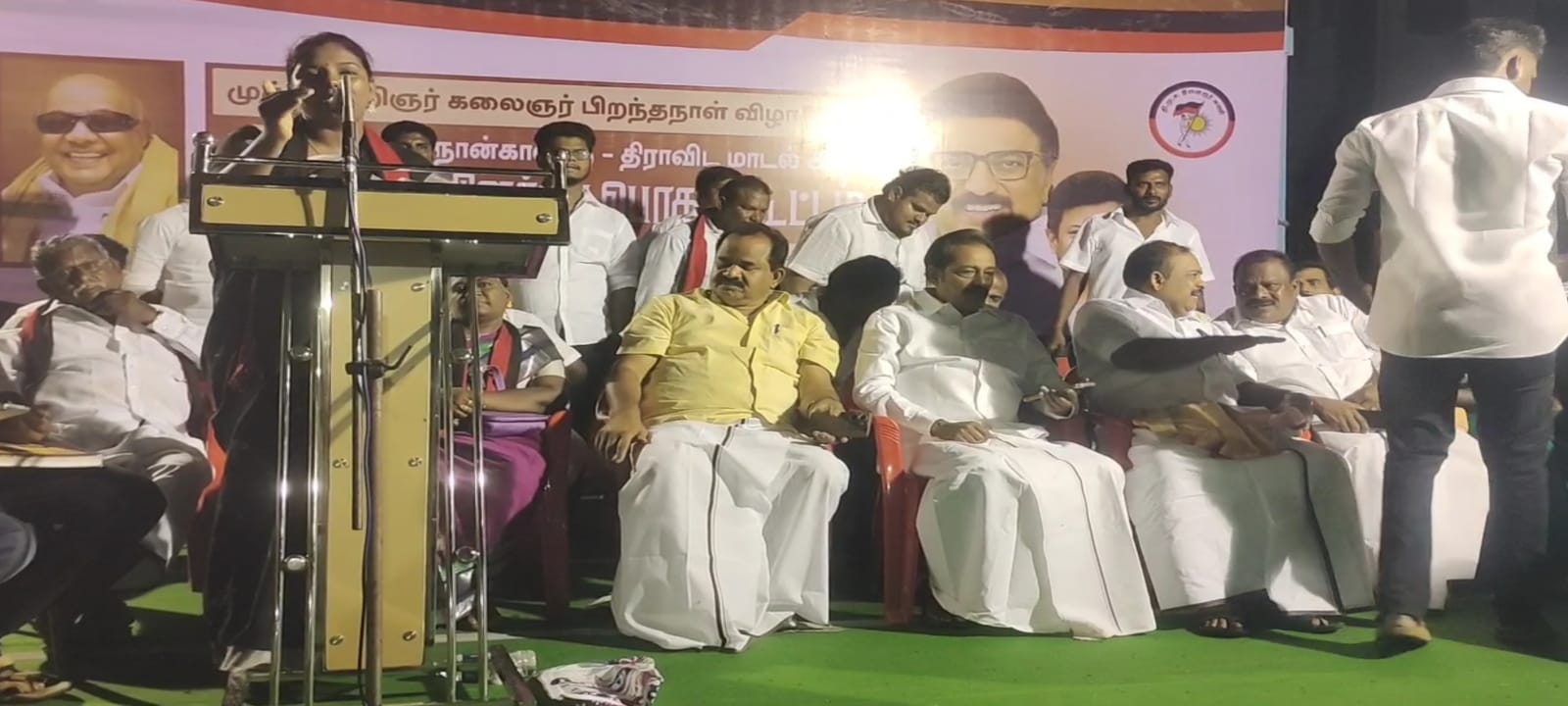 கட்சியின் இளம் பேச்சாளர் நாகை இரா. ப்ரீத்தி மகளிர் உரிமை தொகை மகளிர் இலவச பேருந்து பயணம் நான் முதல்வர் புதுமைப்பெண் திட்டம் அரசு கல்லூரிக்குச் செல்லும் மாணவர்களுக்கு மாதம் ஆயிரம் ரூபாய் வழங்குதல் உள்ளிட்ட எண்ணற்ற சாதனைகளை தமிழக முதல்வர் அறிவிக்கப்பட்டு சிறப்பாக செயல்படுத்தி வருகிறார் என்று சிறப்பு உரையாற்றினார்.