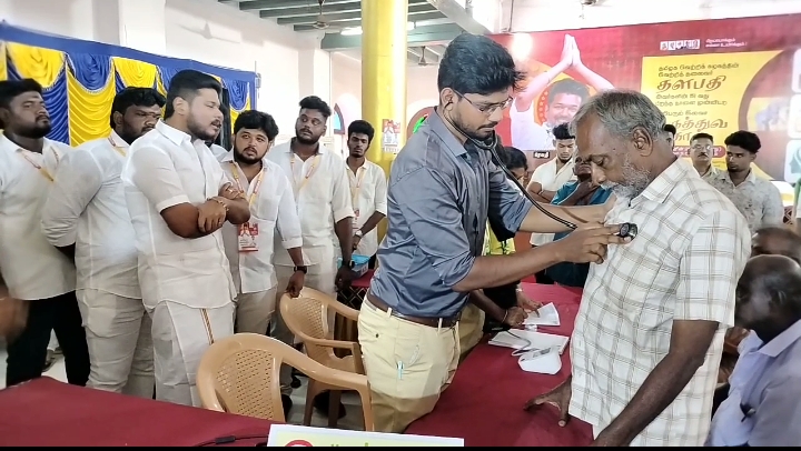 புதுக்கோட்டையில் மாவட்டத்தில் தமிழக வெற்றிக் கழகத்தின் தலைவர் விஜயின் 51 ஆம் ஆண்டு பிறந்தநாள் விழாவினை முன்னிட்டு புதுக்கோட்டை நகரமன்ற வளாகத்தில் இன்று மாபெரும் இலவசம் மருத்துவ முகாம் நடைபெற்றது.