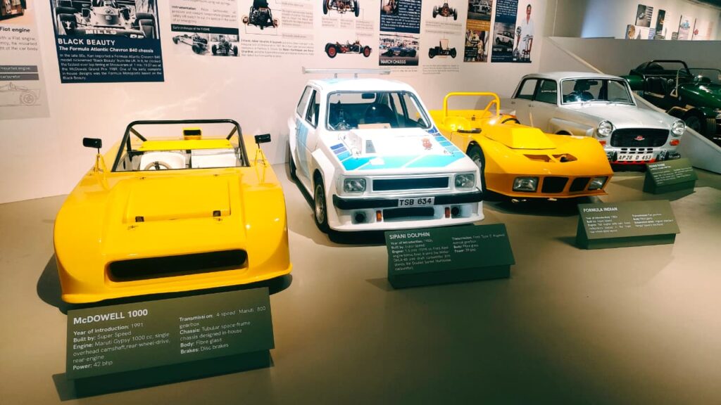 கோவை கார் ஆர்வலர்களுக்கான ஒரு மையமாக இருப்பதால் இந்த துறையின் முன்னோடிகளையும் கோவையில் தயாரிக்கப்பட்ட பல்வேறு ரேஸ் கார்களையும் வெளிப்படுத்துவதற்காக ஒரு சிறப்பு பிரிவு அமைக்கப்பட்டுள்ளதாகவும் இங்கு புகழ்பெற்ற கார் பந்தய வீரர் கரிவரதன் உருவாக்கிய இந்தியாவில் தயாரிக்கப்பட்ட முதல்  ரேஸ் கார் – போர்டு ஜிடி40, எல்ஜிபி ரோலான், எம்ஆர்எப் 2000 போன்ற பல்வேறு ரேஸ் கார்களும் இடம்பெற்றுள்ளன எனவும் கோயம்புத்தூர் மோட்டார் விளையாட்டு துறைக்கு வழங்கிய சிறப்பான பங்களிப்புகளான “ஆட்டோ காம்போனென்ட்ஸ்,கோ-கார்ட், ஃபார்முலா ரேஸ் கார்கள், ரேஸ் டிராக்குகள், மோட்டார் விளையாட்டு அணிகள், பண்பாடு மற்றும் பாரம்பரியம்” ஆகியவற்றை இந்தப் பிரிவு வெளிப்படுத்துகிறது என்றனர்.