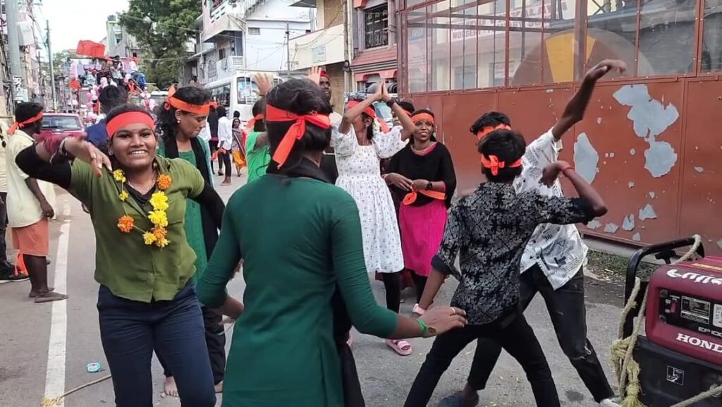 ஆண்கள் பெண்கள் என ஆட்டம் பாட்டத்துடன் பிள்ளையார் கரைப்பு வாகன ஊர்வலம் நடைபெற்றது. ஊர்வலம் செல்லும் வழி பாதை முழுவதும் பலத்த போலீஸ் பாதுகாப்பு அளிக்கப்பட்டு உள்ளது.