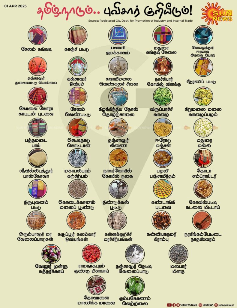 கடந்த 2022_ம் ஆண்டு தஞ்சை மாவட்டத்தை சேர்ந்த வழக்கறிஞர் சஞ்சாய் காந்தி என்பவர் தோவாளை மாணிக்க மாலை மற்றும், கும்பகோணம் வெற்றிலைக்கு. புவிசார் குறியீடு கேட்டு விண்ணப்பித்திருந்தார். இந்த நிலையில் இன்று (ஏப்ரல்_1) தோவாளை மாலை மற்றும் கும்பகோணம் வெற்றிலைக்கும் புவிசார் குறியீடு அறிவிக்கப்பட்டுள்ளது.