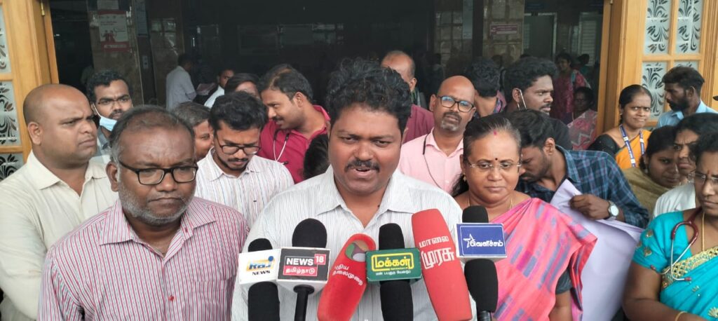 குறைந்த பட்ச NMC தகுதியை பொறுத்து மட்டும் முன்னுரிமை கொடுக்காமல் மருத்துவ பயனாளிகளையும் கணக்கில் கொண்டு மருத்துவர்களை பணியில் அமர்த்திட வேண்டும். தவிர அதிகபடுத்த வேண்டிய தருணத்தில் குறைப்பது கூடாது உள்ளிட்ட கோரிக்கை களை தமிழக மருத்துவம் மற்றும் மக்கள் நல்வாழ்வுத்துறை நிறைவேற்றவலியுறுத்தி மருத்துவர்கள் கோஷமிட்டனர்.