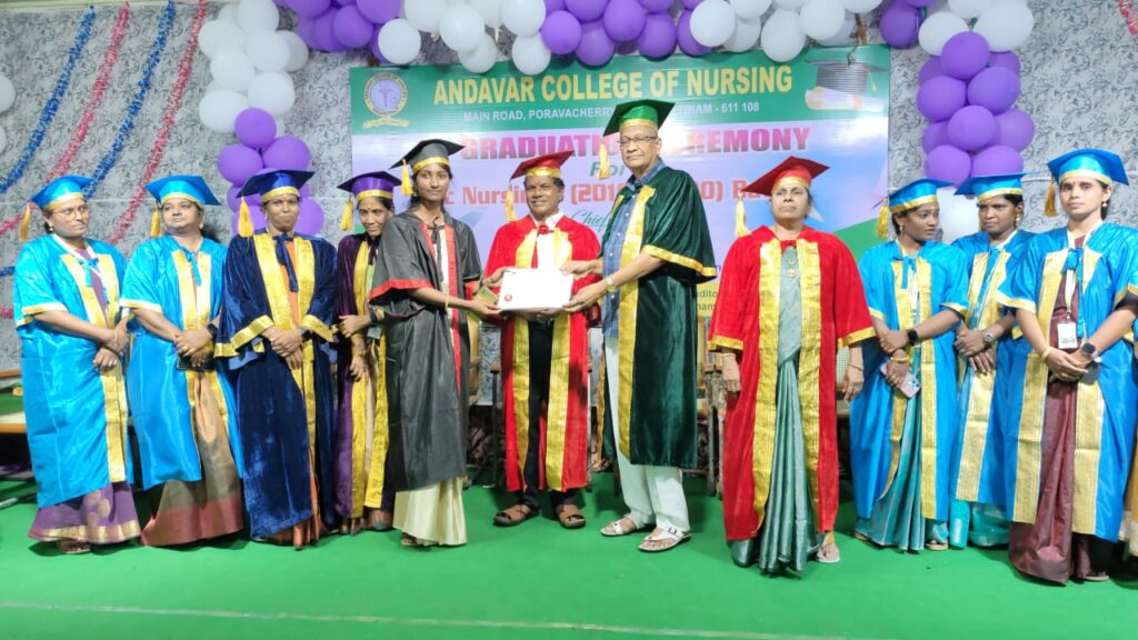 நாகப்பட்டினம் மாவட்டம் பொராவாச்சேரியில் ஆண்டவர் செவிலியர் பயிற்சி கல்லூரி செயல்பட்டு வருகிறது. இக்கல்லூரி 3 வது பட்டமளிப்பு விழா நடைப்பெற்றது. கல்லூரி தாளாளர் நடராஜன் தலைமையில் நடைப்பெற்ற விழாவில் 2019 – 20 கல்வி ஆண்டில் பயின்ற மாணவிகளுக்கு மருத்துவர் அன்சாரி கலந்துக்கொண்டு சான்றிதழ்களை வழங்கினார்.