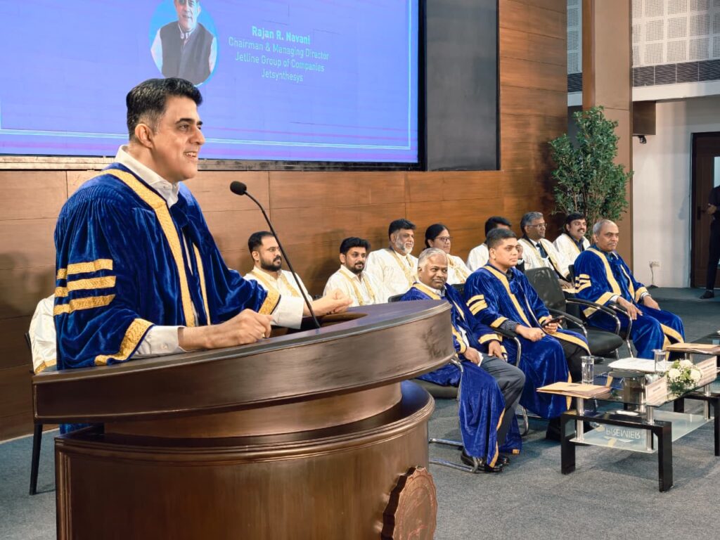 நிகழ்ச்சியில் சிறப்பு விருந்தினராகப் பங்கேற்று, மாணவர்களுக்குப் பட்டங்களை வழங்கி ஜெட்லைன் குழுமத்தின் தலைவரும், ஜெட்சின்தெசிஸ் (JetSynthesys) நிறுவனருமான திரு. ராஜன் ஆர். நவானி பேருரையாற்றினார். அவர் பேசியதாவது: