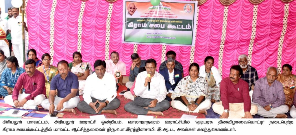 77வதுகுடியரசு தினத்தை முன்னிட்டு அரியலூர் ஒன்றியத் திற்குட்பட்ட வாலாஜாநகரம், கோவிந்தபுரம், தாமரைகுளம், ஓட்டக்கோவில், இராயம்புரம் உள்ளிட்ட ஊராட்சிகளில் கிராம சபை கூட்டங்கள் நடைபெற்றன.