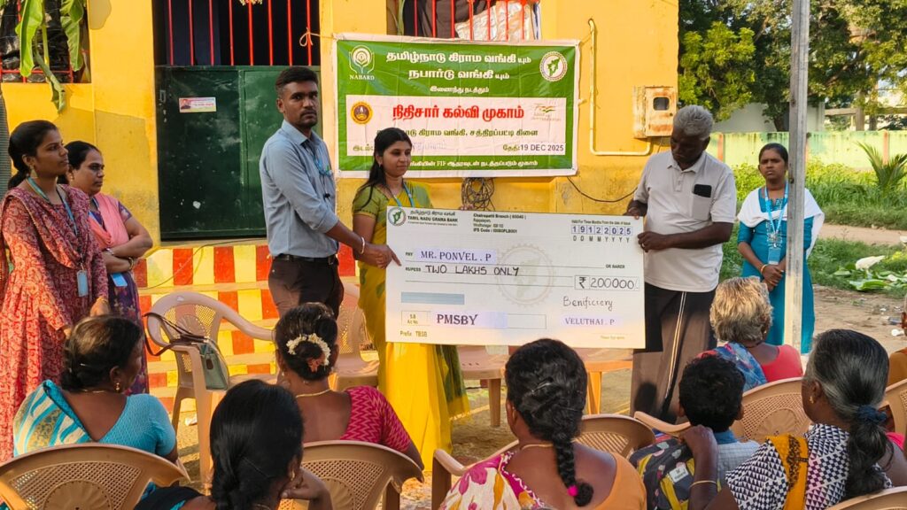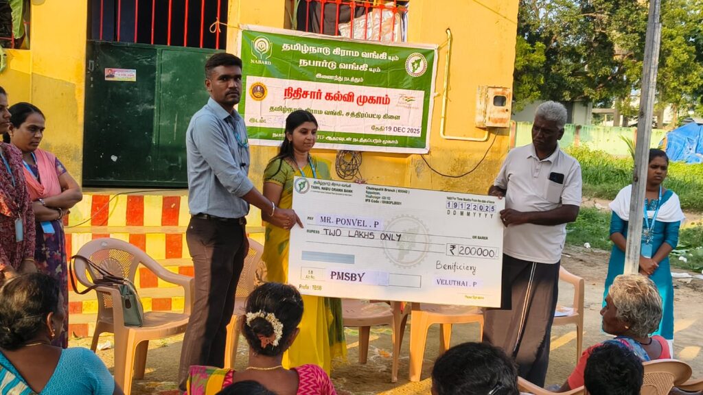 பொன் வேலிடம் காப்பீட்டுத் தொகை வழங்கிய 2 லட்சத்தை தமிழ்நாடு கிராம வங்கி விருதுநகர் மாவட்டம் சத்திரப்பட்டி கிளை சார்பில் வீட்டில் இருந்து வேலுத்தாய் என் கணவர் பொன் வேலிடம் வங்கியின் மண்டல அதிகாரி மற்றும் மேலாளர் மகேஸ்வரி ஊர் பொதுமக்கள் மத்தி அரசு வழிகாட்டுதலின்படி கட்டிய பணம் இருபது ரூபாய் இருந்தாலும் இரண்டு லட்ச ரூபாய் காப்பீடு தொகை பெற்றது மகிழ்ச்சியாக இருப்பதாக பொன்வேல் தெரிவித்தார் .