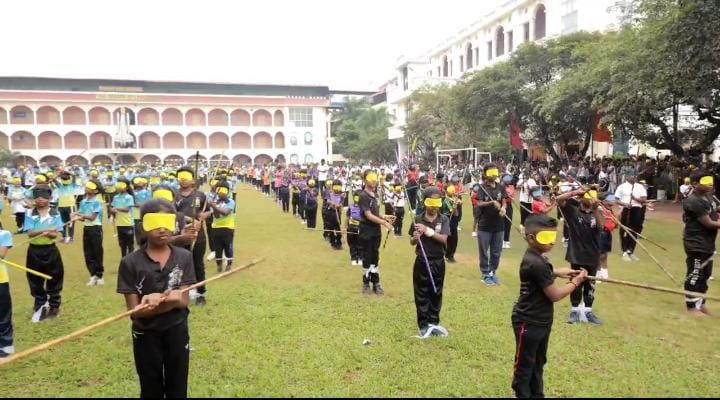 ஆலந்தூர் மான்ஃபோர்ட் மெட்ரிகுலேஷன் மேல்நிலைப்பள்ளியில் மாபெரும் கராத்தே, யோகா, சிலம்பம் உலக சாதனை நிகழ்ச்சி நடைபெற்றது.