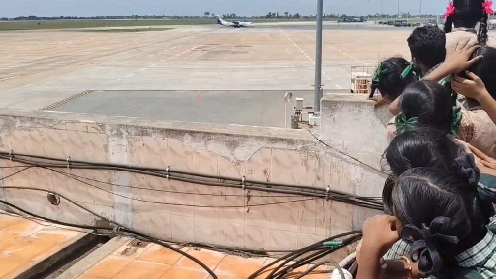 இந்த நிலையில் மதுரையை விமான நிலையத்திற்கு அழைத்துவரப்பட்ட மாநகராட்சி மாணவர்களை விமானம் தரையறுவதை பார்த்து மகிழ்ச்சி அடைந்தனர். தொடர்ந்து கீழடி சென்று தமிழர்களின் பாரம்பரியத்தை பார்க்க இருப்பதாகவும் தெரிவித்தனர்.