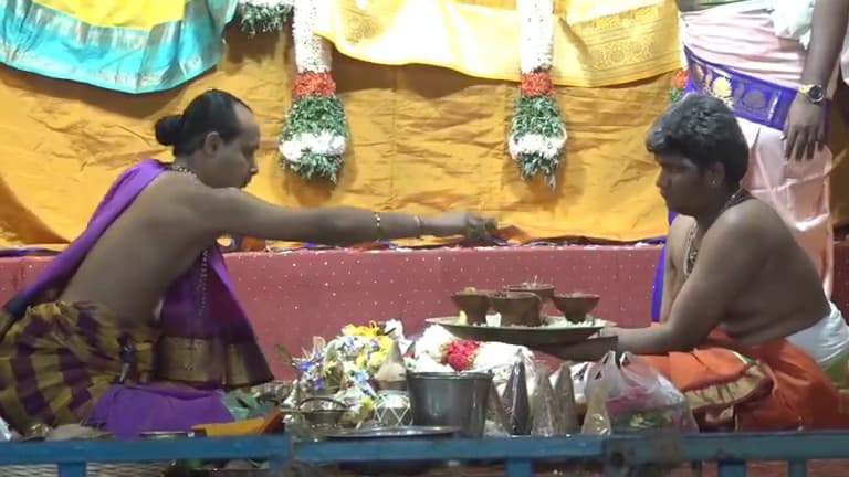 இதனையடுத்து சுவாமிகள் தினமும் பல்வேறு வாகனங்களில் எழுந்தருளி வீதியுலா வந்து பக்தர்களுக்கு அருள்பாலித்தார். இந்நிலையில் விழாவின் சிறப்பு பெற்ற நிகழ்ச்சிகளில் ஒன்றான திருக்கல்யாண வைபவம் கோவில் மண்டபத்தில் வெகு விமர்சையாக நடைபெற்றது.