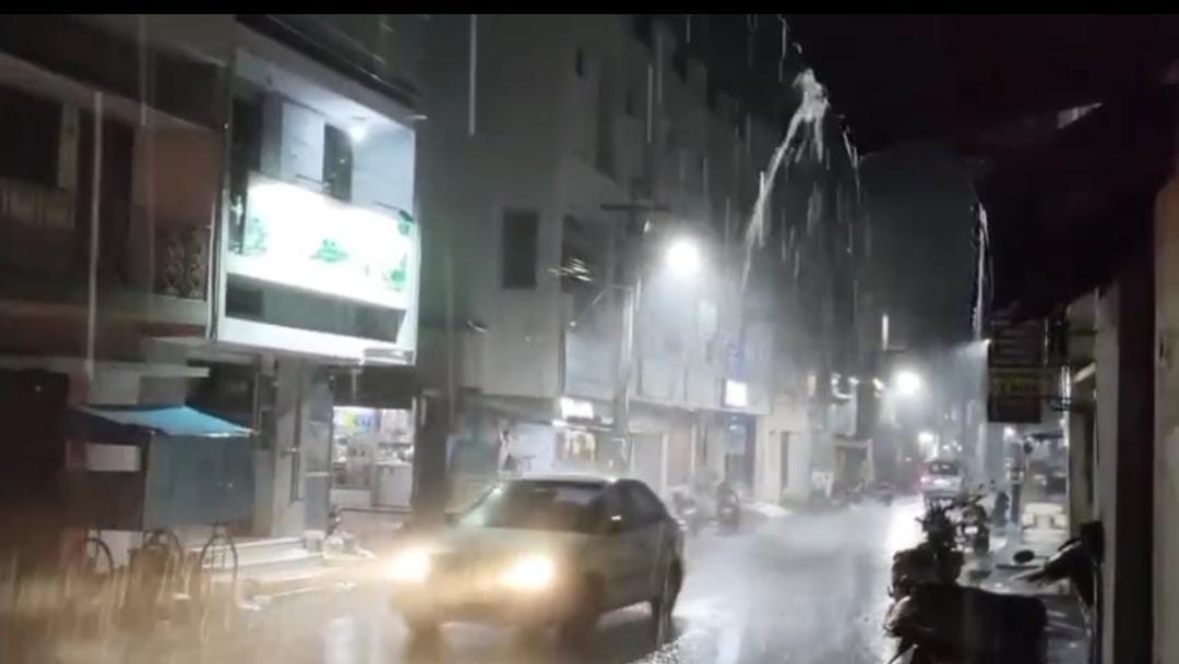 கரூர் மாநகராட்சி பகுதியில் சூறாவளி காற்றுடன் பலத்த மழை சுமார் அரை மணி நேரத்திற்கு மேலாக பெய்து வருகிறது. இதனால் கோடை வெயிலில் தவித்த கரூர் மக்கள் மகிழ்ச்சி அடைந்தனர்.